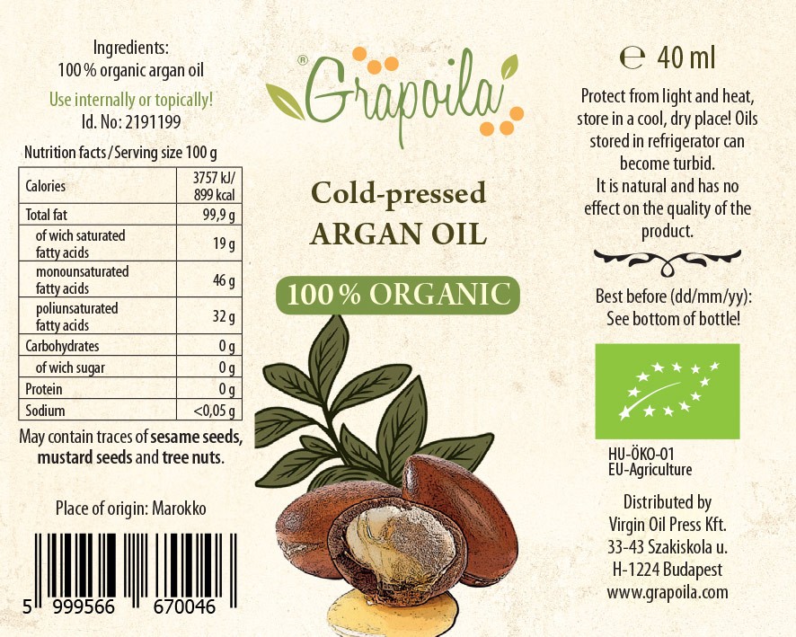 Marokkói ökológiai gazdálkodásból származó, hidegen sajtolt, Ecocert, USDA minősítésű, sejtmegújító, bőrbarát argánolaj.