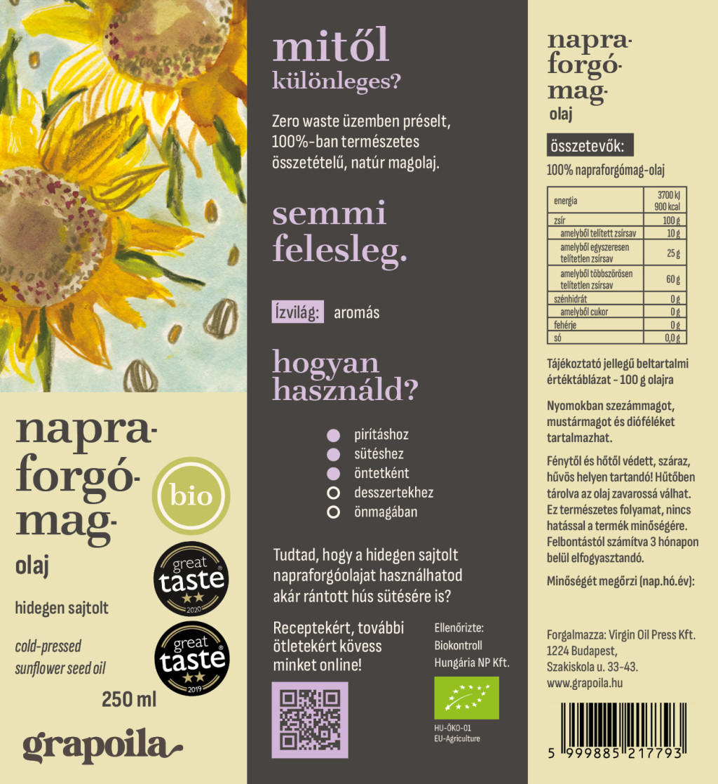 BIO napraforgómag-olajunk a világ legismertebb és leghíresebb, vakteszten alapuló ételkóstoló versenyén, a Great Taste-en, melyet az élelmiszerek "Oscarjaként" is emlegetnek, nagy büszkeségünkre 2019-ben és 2020-ban kétcsillagos, kiváló minősítést szerzett!