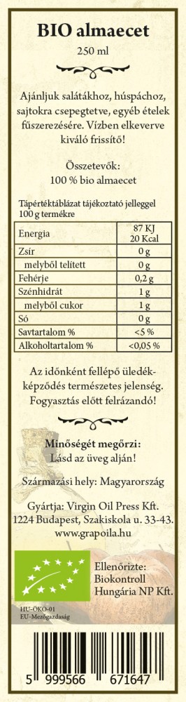 A Grapoila almaecet természetes, biológiai erjesztéssel készült, tartósítót, színezéket, aromát nem tartalmaz. Kizárólag jó minőségű alapanyagból, kíméletes eljárással, alacsony hőfokon készül. Az erjedés során a gyümölcs cukortartalma kierjed ecetsavvá, de az