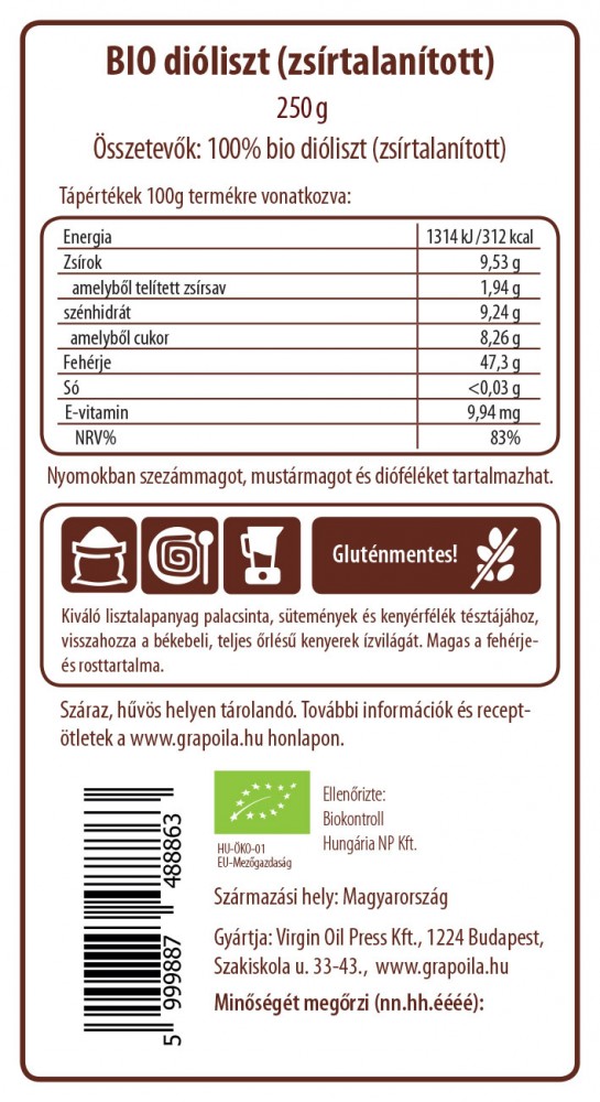 Magas energiatartalmú, fehérjedús magliszt. A szervezet számára fontos ásványi anyagokat tartalmaz: cinket, foszfort, káliumot, jódot és ként. A dióbél aminosavjai létfontosságúak az emberi szervezet számára. A dióliszt rendszeres fogyasztása csökkenti a koleszterinszintet, és növeli az inzulinérzékenységet, melynek köszönhetően a cukorbetegség kockázata kisebb. Bártan építsük be a diétánkba, hiszen rendszeres fogyasztása testsúlyvesztéshez vezethet, ugyanis számos fehérjeforrást tökéletesen ki lehet váltani vele.