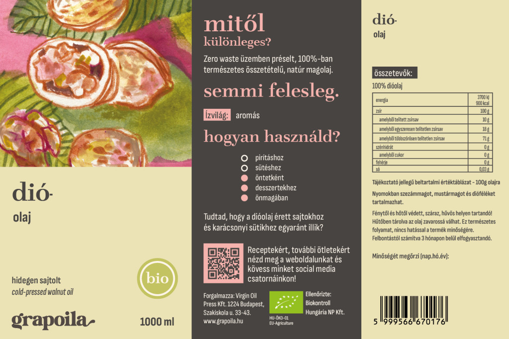 Az egyik legkellemesebb aromájú és ízű, hidegen sajtolt növényi olajunk. Linolsav tartalmának köszönhetően erősíti az immunrendszert.