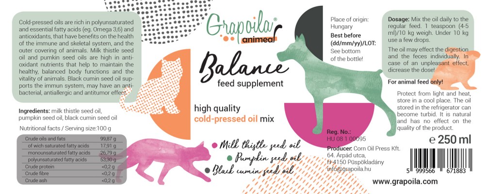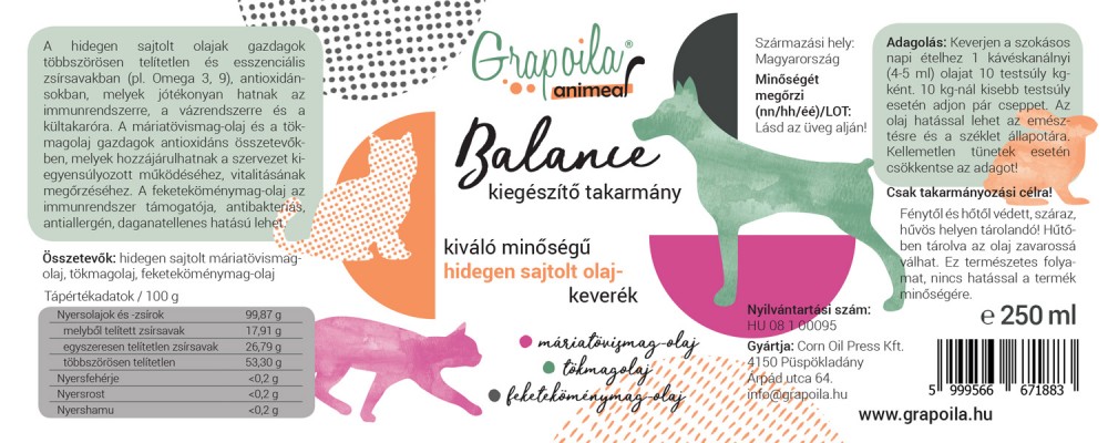Grapoila ANIMEAL BALANCE hidegen sajtolt olajkeverék állatoknak 250 ml
