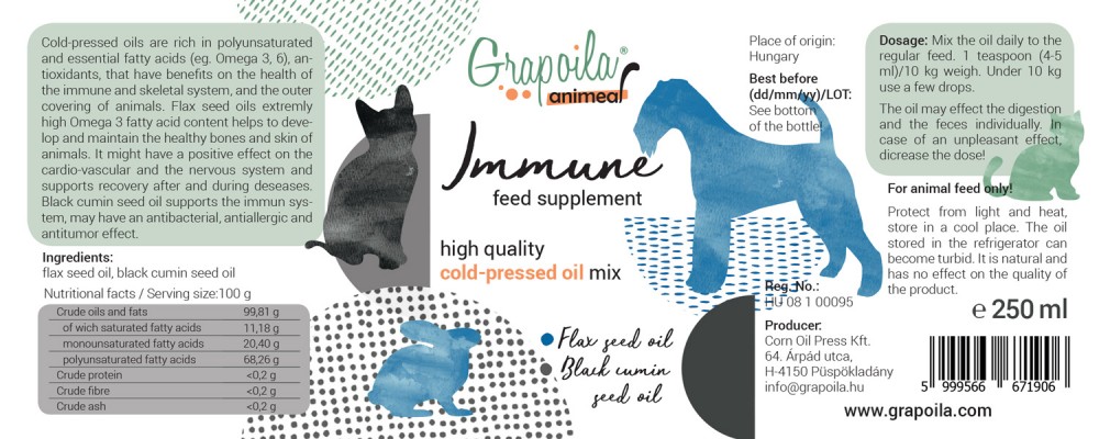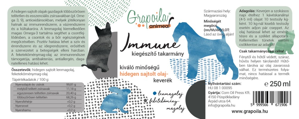 Grapoila ANIMEAL IMMUNE hidegen sajtolt olajkeverék állatoknak 250 ml