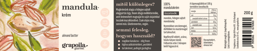 A mandulakrém a mandula hidegen préselése után az olaj aljára ülepedő krém, amely koncentráltan tartalmazza a mandulában található vitaminokat és egyéb, értékes összetevőket.